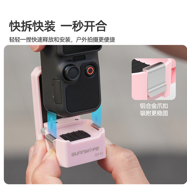 快拆快装,一秒开合。轻轻一捏快速释放和安装,户外拍摄更便捷。