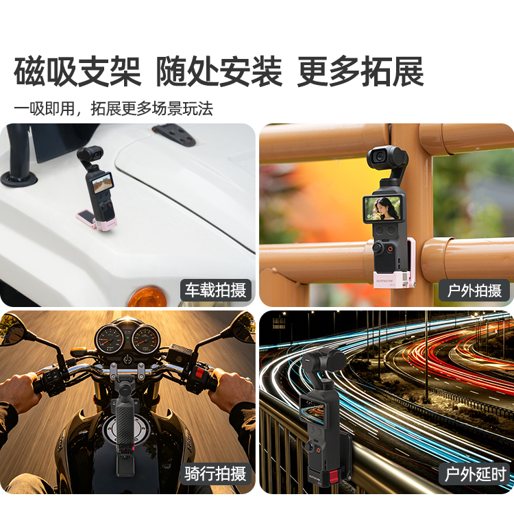 磁吸支架,随处安装,一吸即用,拓展更多场景玩法。