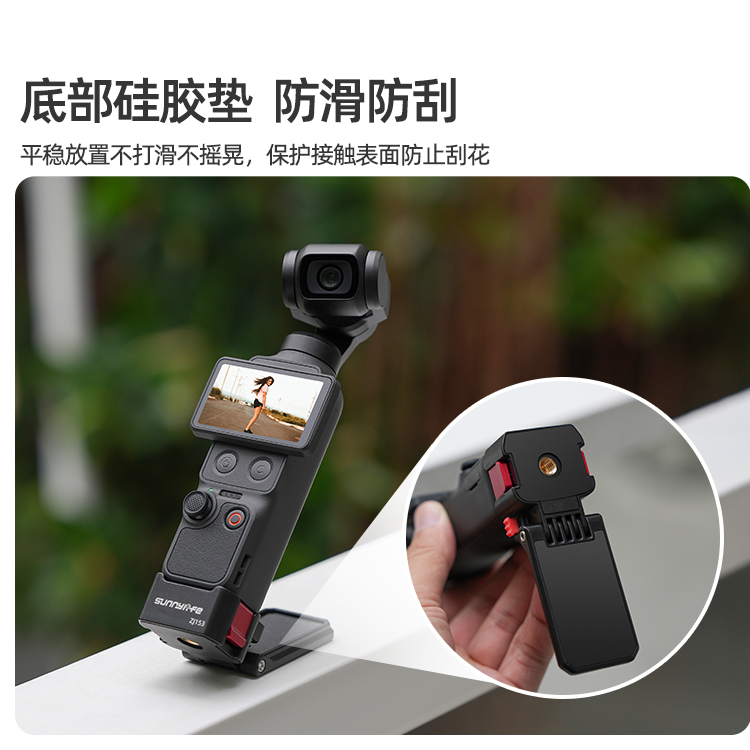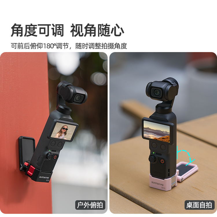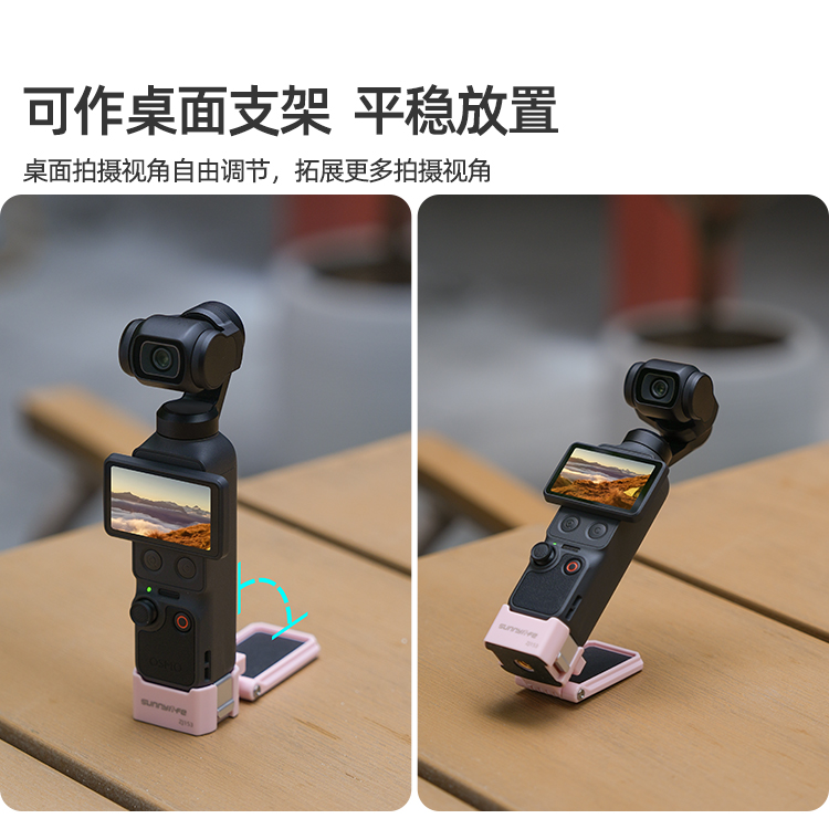 可作桌面支架,平稳放置。桌面拍摄视角自由调节,拓展更多拍摄视角。