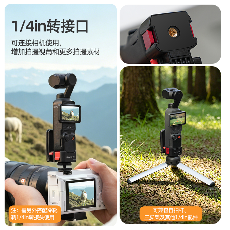 1/4in转接口,可连接相机使用,增加拍摄视角和更多拍摄素材。