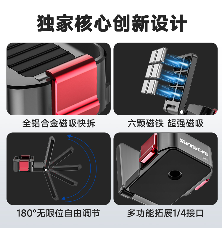 磁吸支架,随处安装,更多拓展。一吸即用,拓展更多场景玩法。