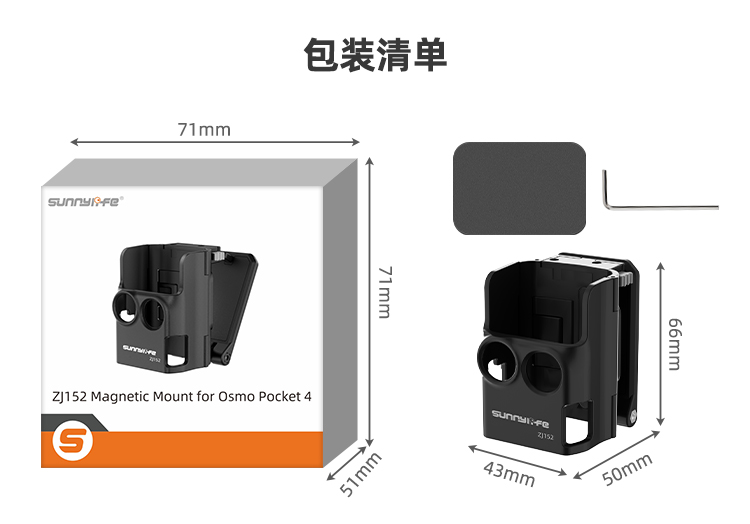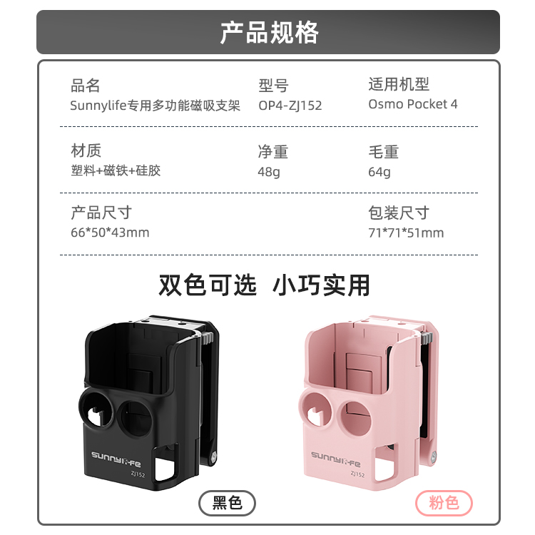 可搭配Sunnylife SC121旋压吸盘、Z158云台镜头保护罩和AD824/AD159 转接件使用。