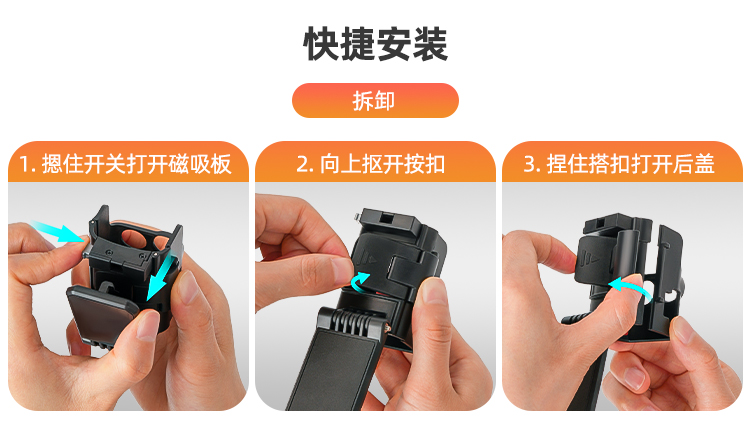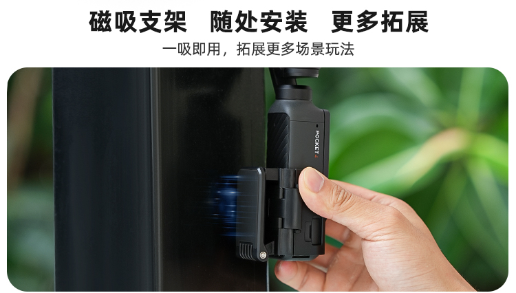 磁吸支架,随处安装,更多拓展。一吸即用,拓展更多场景玩法。