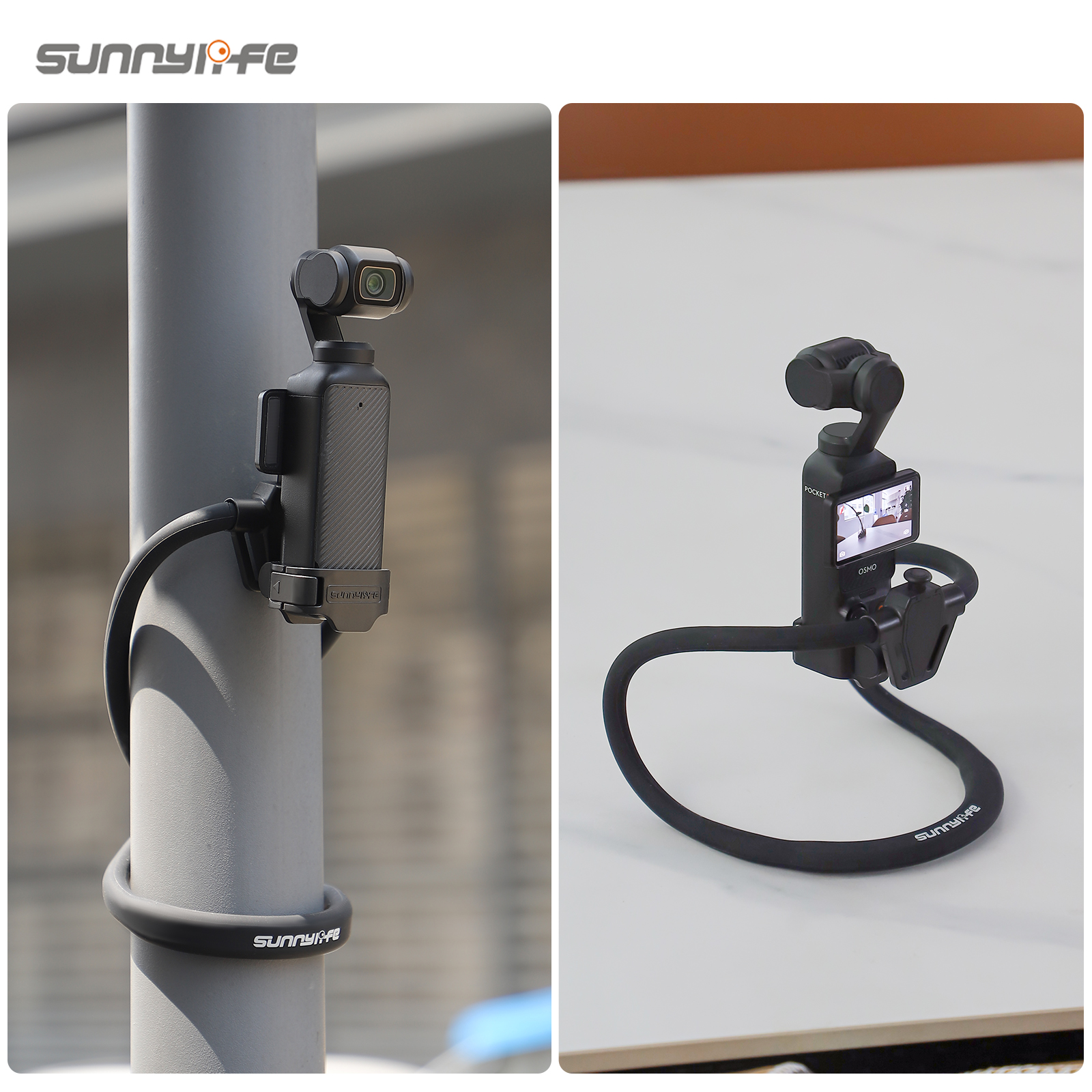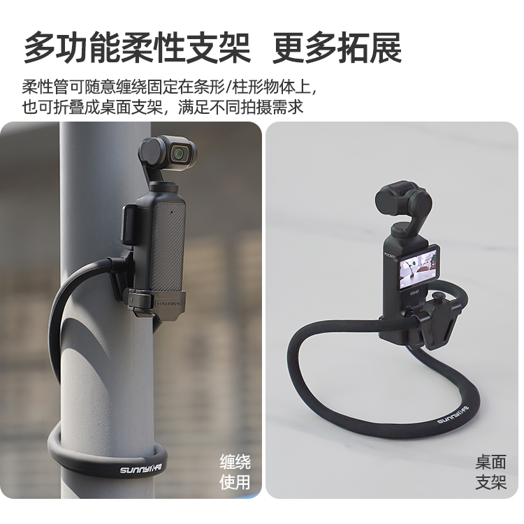 柔性管可随意缠绕固定在条形/柱形物体上,也可折叠成桌面支架,满足不同拍摄需求。