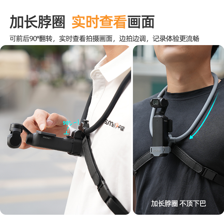 加长脖圈,实时查看画面。可前后180°翻转,实时查看拍摄画面,边拍边调,记录体验更流畅。