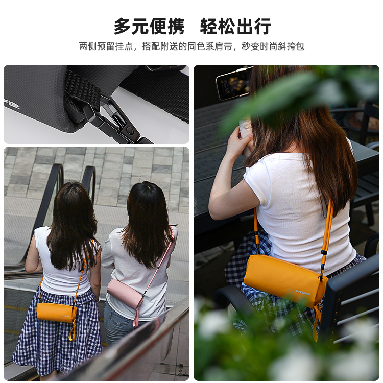 两侧预留挂点,搭配附送的同色系肩带,秒变时尚斜挎包。